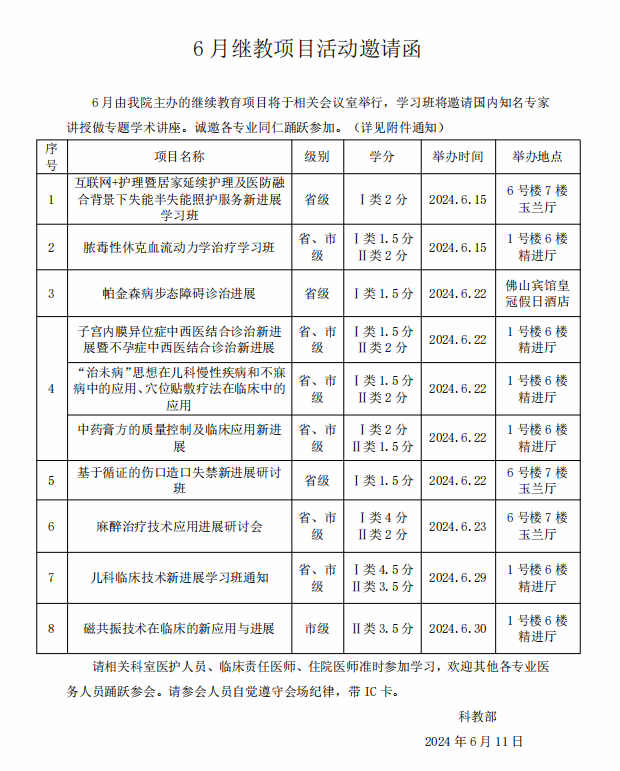 2024年6月继教项目邀请函