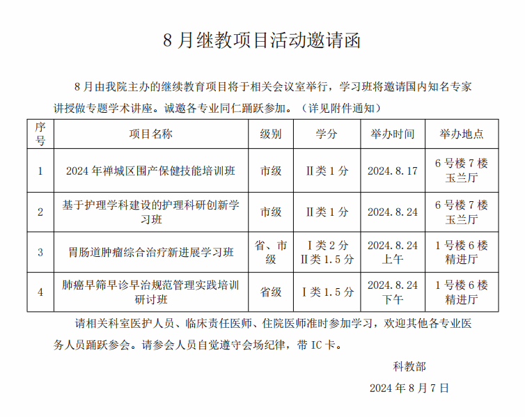2024年8月继教项目邀请函