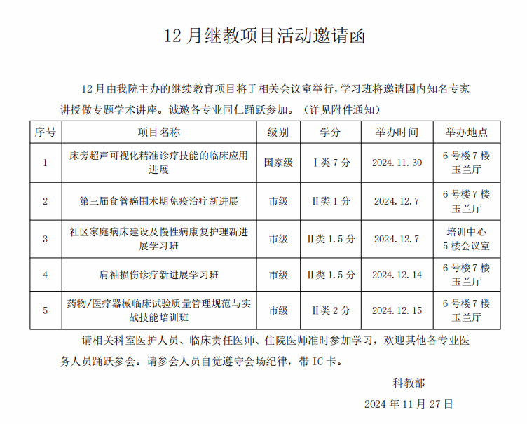 2024年12月继教项目邀请函